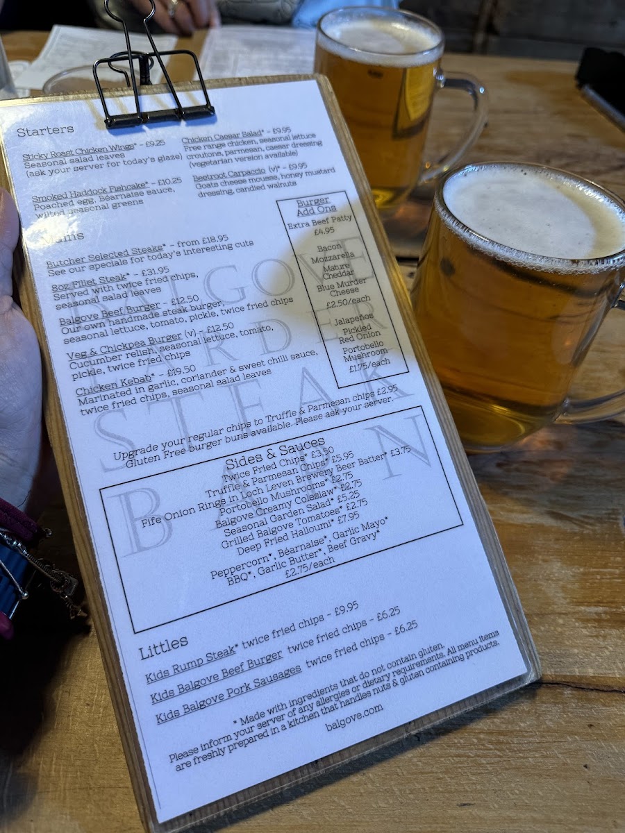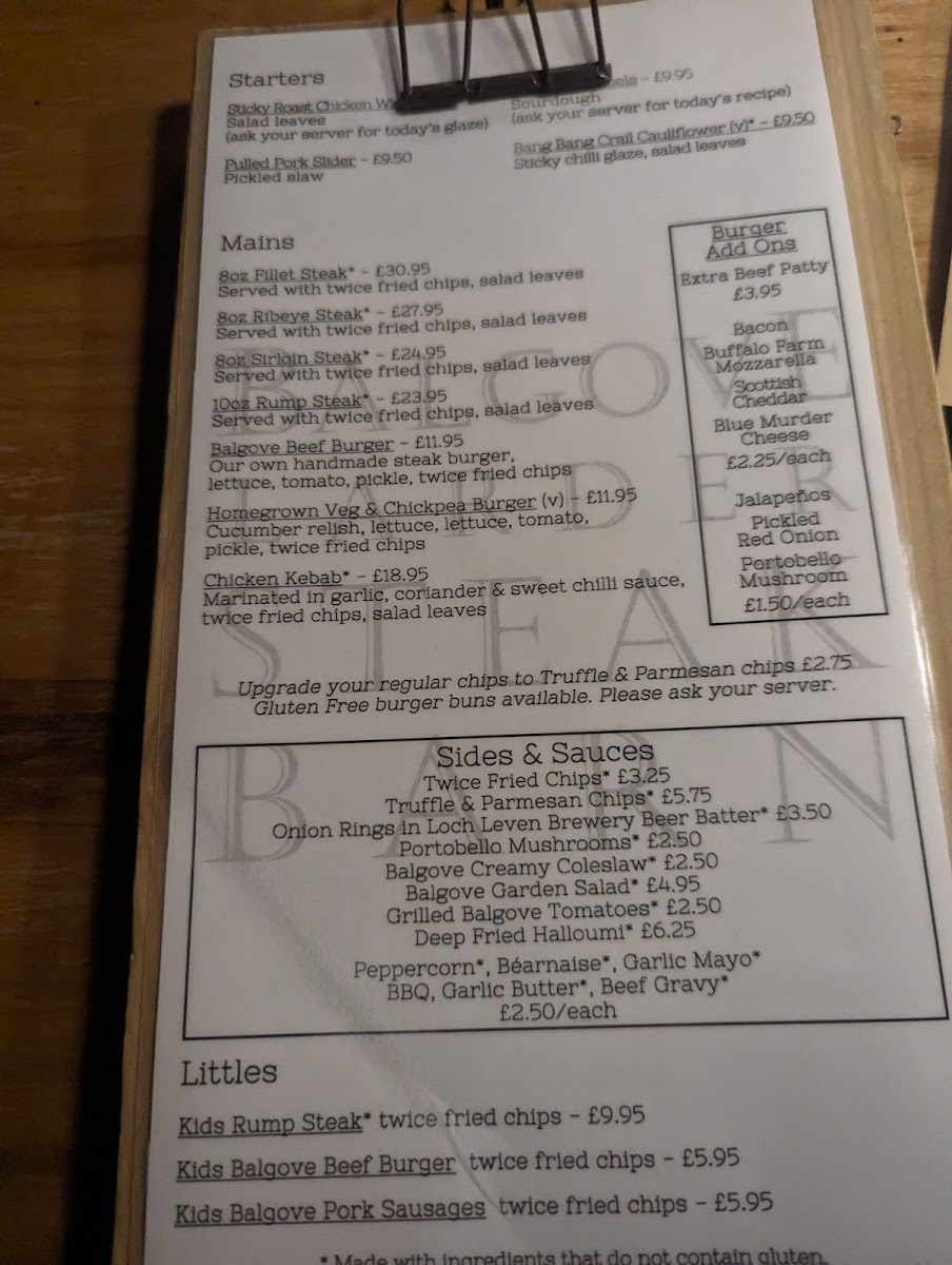 The menu also features inviting starters like Haggis Bon Bons and sides such as delectable Dauphinoise Potatoes. The atmosphere is warm and friendly, enhanced by welcoming staff and a peek into the lively open kitchen.