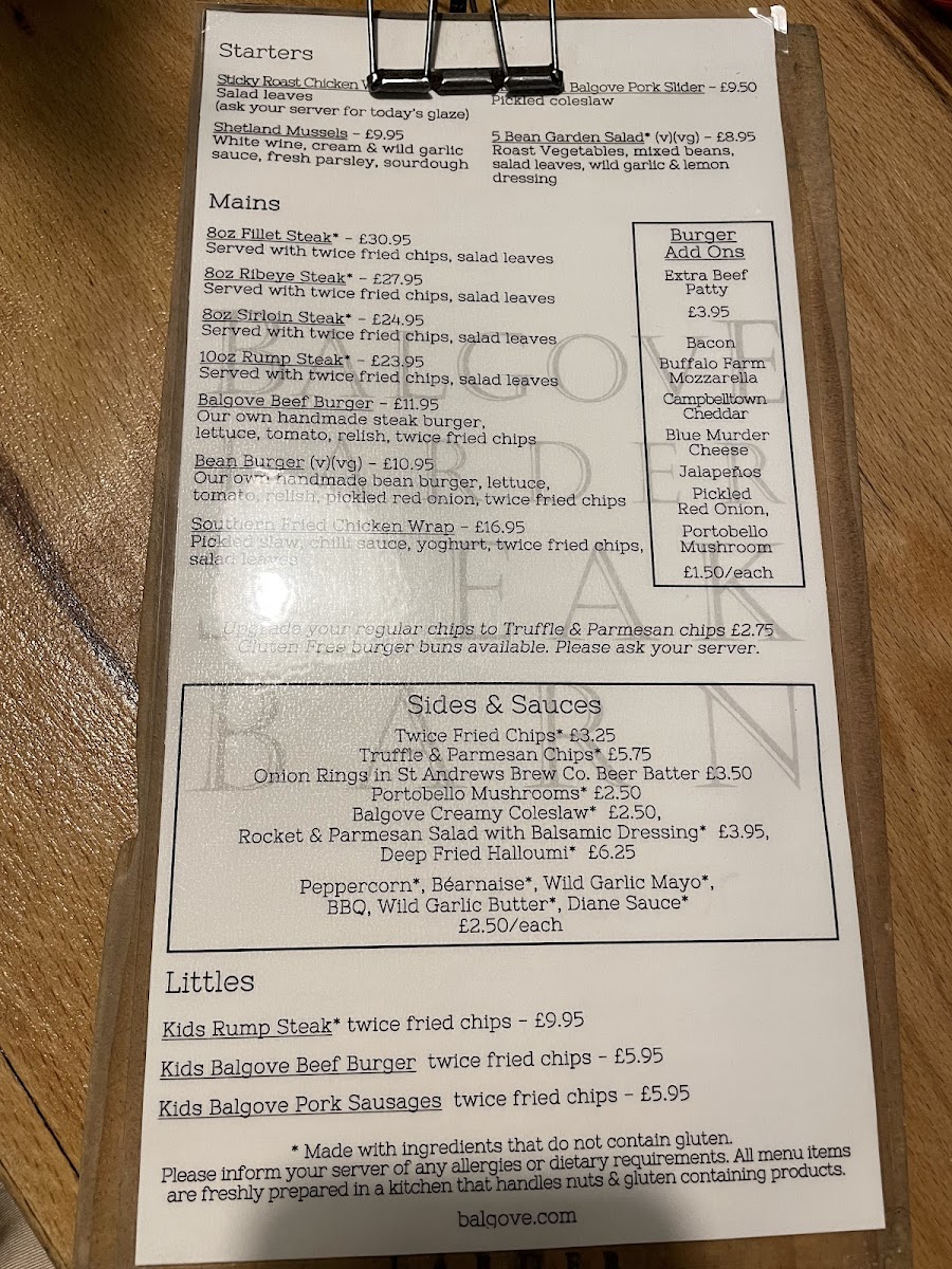 Welcome to The Steak Barn, a hidden gem located just outside St. Andrews, UK. This charming eatery invites steak lovers to indulge in a variety of expertly prepared cuts, including rib-eye, sirloin, and fillet steaks, all celebrated for their tenderness and flavor. The fillet steak, in particular, has been noted for its melt-in-your-mouth quality, leaving diners utterly satisfied.